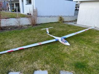 Spannweite 340cm, wenige Flüge, Flügel ohne Gebrauchsspuren, Rumpf hat hinten zwei kleine Risde in Deckschicht.