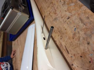 Motor wurde eingebaut, sowie eine Sperrholzplatte mit Schienen zur Regler und Akku Einbau