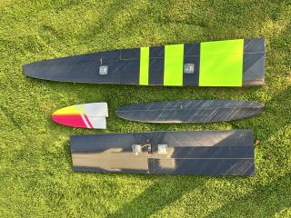 Das Modell ist komplett ausgerüstet, inklusive Flügel- und Rumpfballast und 2 zusätzlichen Verbinder für die Aussenflügel. Ebenso sind die Schutztaschen für Tragflächen und Leitwerke dabei.